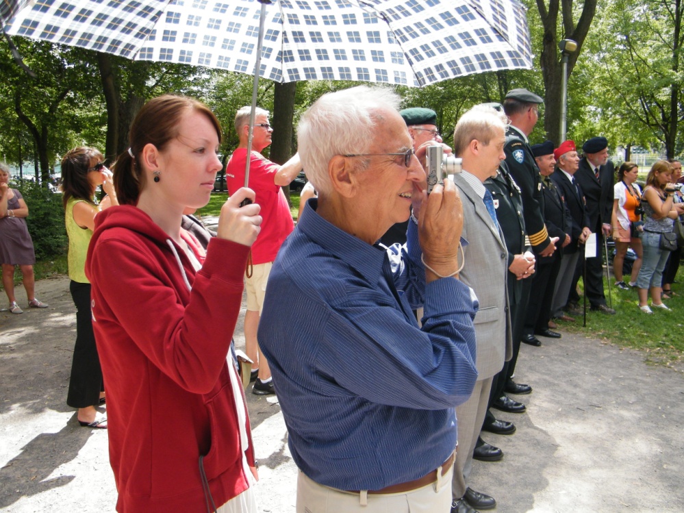 Une fois encore le ministre des Anciens Combattants du Canada, l’Honorable Steven Blaney, nous honore de sa présence. Le lieutenant-colonel Langlois, commandant du Régiment de La Chaudière, est là aussi. Des maires, le capitaine Éric Marmen, qui veille sur nous depuis notre arrivée au Manège militaire de Lévis où nous dormons, Réal Donati, commandant la Légion Royale Canadienne de la Beauce, sont présents. Mais surtout, nous avons l’honneur de rendre hommage à nos chers vétérans en présence d’Adélard Thibeault, vétéran du régiment de La Chaudière qui débarqué le 6 juin 1944 à Bernières sur Mer en Normandie devant cette maison que nous aimons tant et qui fut la première libérée sur une plage du Débarquement.