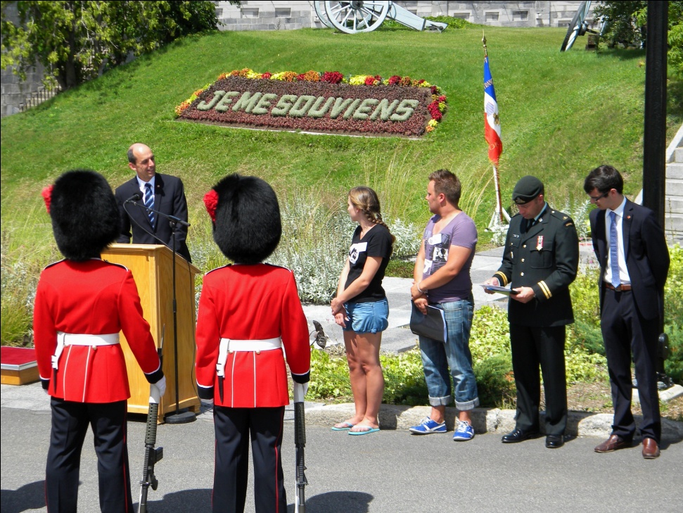 Le maître de cérémonie a 23 ans, c’est un « ancien » et même un des précurseurs de l’association. Il était de l’aventure en 2006 et avait prononcé un discours d’hommage au Royal 22e Régiment devant le monument du R22R situé à quelques centaines de mètres de la Citadelle.