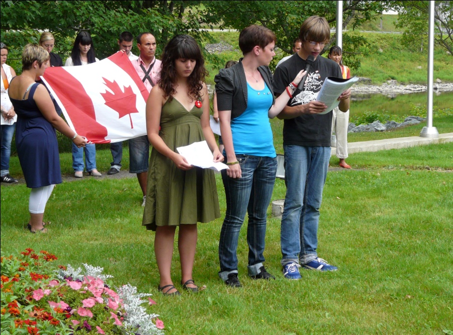 Et puis, quelques français, feuilles en main, les yeux rougis de fatigue, se mettent en place au milieu du brouhaha de la salle commune. Ils commencent à lire dans le bruit diffus d’une soirée d’amis ; ils répètent alors la première des cinq cérémonies de commémorations qu’ils ont prévu d’organiser durant leur séjour au Québec.
