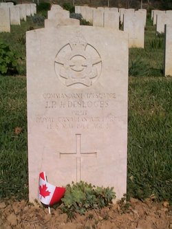 Le chef d’escadrille Desloges, ancien policier de la Gendarmerie royale du Canada, s’était joint à l’aviation canadienne comme pilote dès 1937, et avait été l’un des premiers officiers canadiens engagés dans la Bataille de Grande-Bretagne. Blessé au combat en août 1940, il perdit un œil et avait dû être rapatrié au pays et fut éventuellement promu commandant d’escadre (lieutenant-colonel d’aviation). Après quelques mois au poste d’officier de coordination de la lutte contre les sous-marins dans le Bas Saint-Laurent, le commandant d’escadre Desloges avait été nommé attaché de l’air de la mission canadienne à Alger auprès du Comité de libération de la France libre et, en mai 1944, alors qu’il faisait une tournée des aérodromes français de l’Afrique du Nord, il devait trouver la mort dans l’écrasement de l’avion qui le transportait et fut inhumé à Rabat, au Maroc.